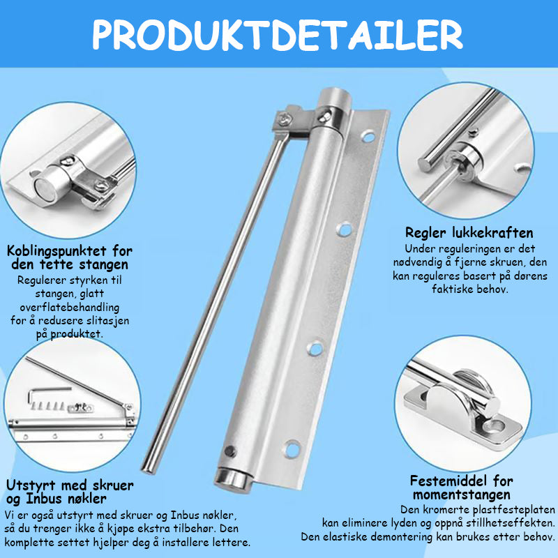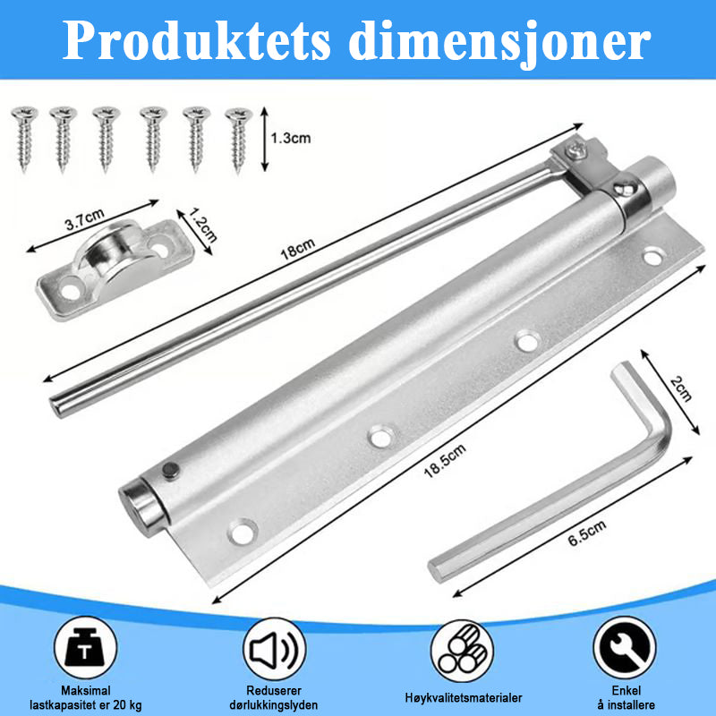 Du trenger ikke lenger å bekymre deg for å la døren stå åpen, den lukkes automatisk og holder hjemmet ditt trygt.