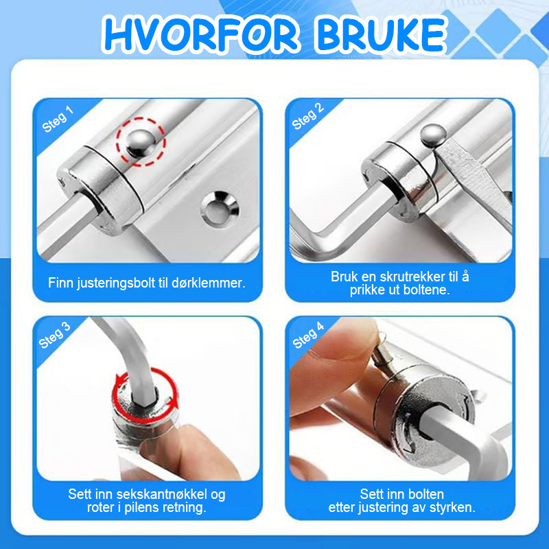 ✨Enkel å installere: Bare juster lukkekraften først, og monter deretter den automatiske dørlukkeren mellom dørkarmen og skruene. Hele installasjonsprosessen er enkel og rask, ingen profesjonell hjelp nødvendig!