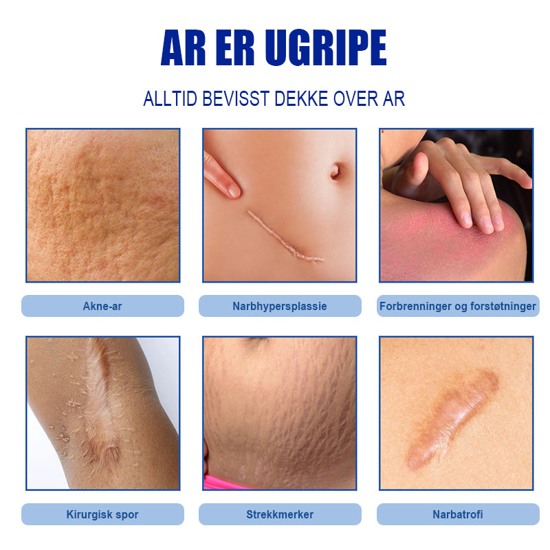 Enten de er forårsaket av kirurgi, brannskader, kutt, akne eller strekkmerker, virker de aktive ingrediensene på cellenivå, bryter ned skadet kollagen og stimulerer veksten av nytt vev.